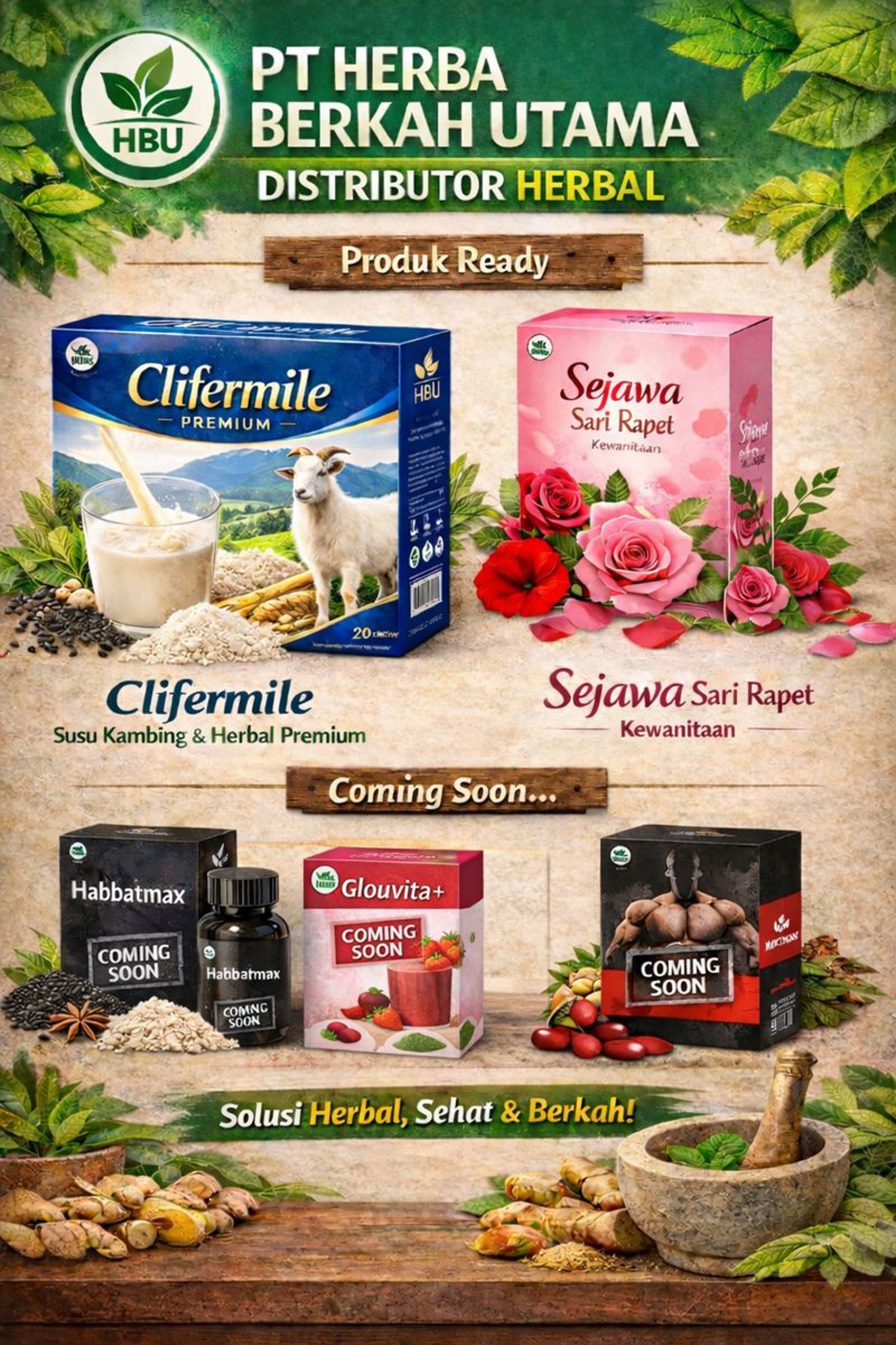 PT HERBA BERKAH UTAMA (HBU) adalah distributor herbal yang berkomitmen menghadirkan produk kesehatan tubuh berbahan alami berkualitas tinggi. Kami fokus membantu menjaga kesehatan serta mendukung proses pengobatan dan pemulihan berbagai kondisi, mulai dari keluhan ringan hingga penyakit yang membutuhkan pendampingan serius.